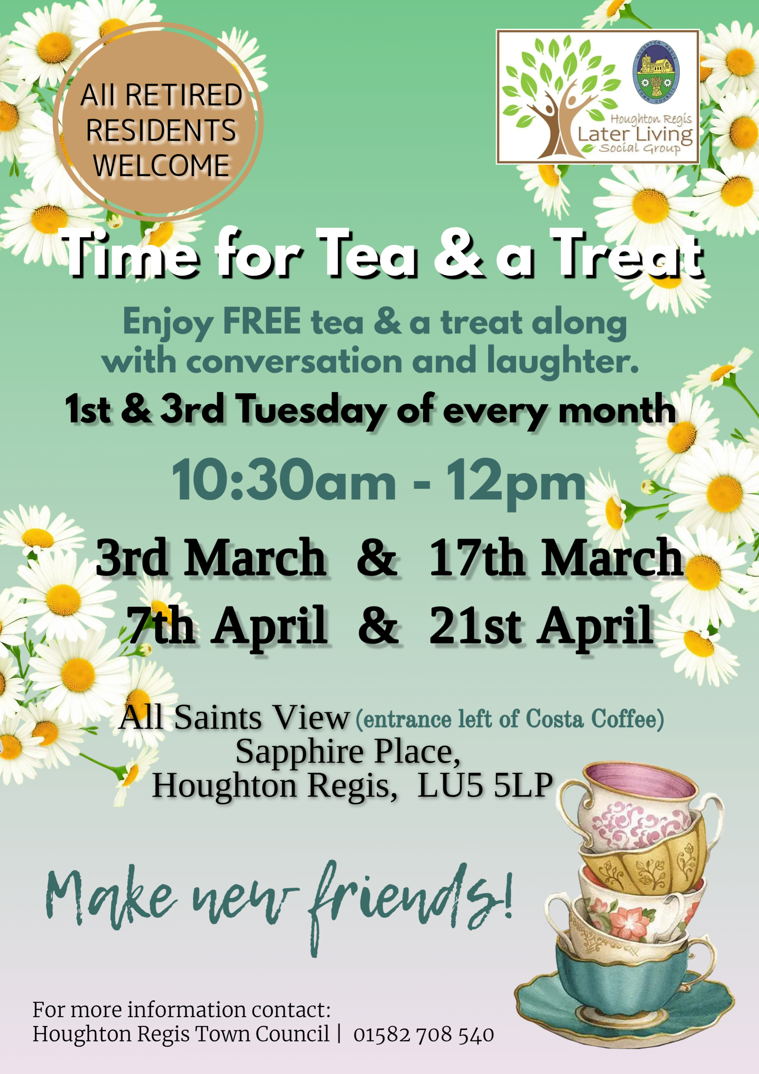 Becoming a member of our group is easy! Simply either pop along to one of our Tea & Treat monthly afternoons and sign up then with one of our friendly staff members, or call Zunaira on 01582 708540 to register as a member.